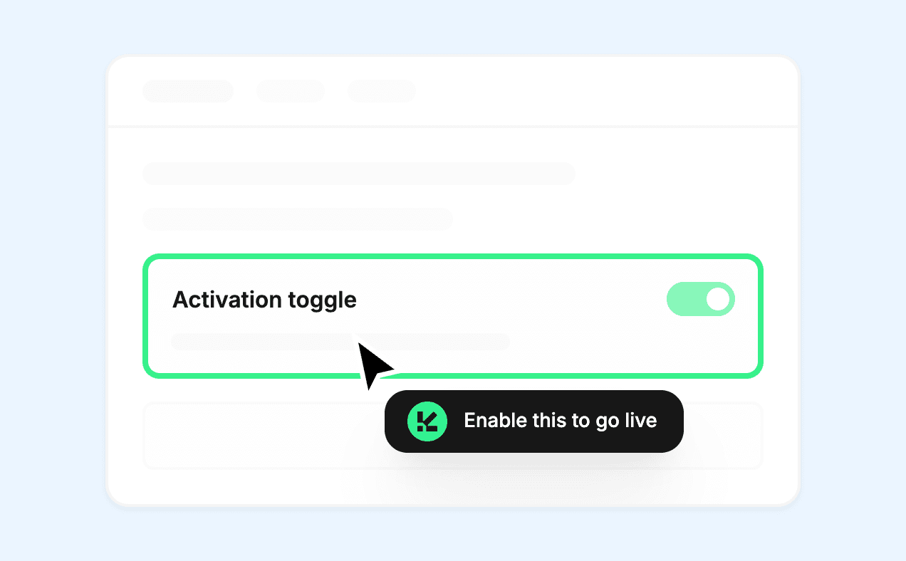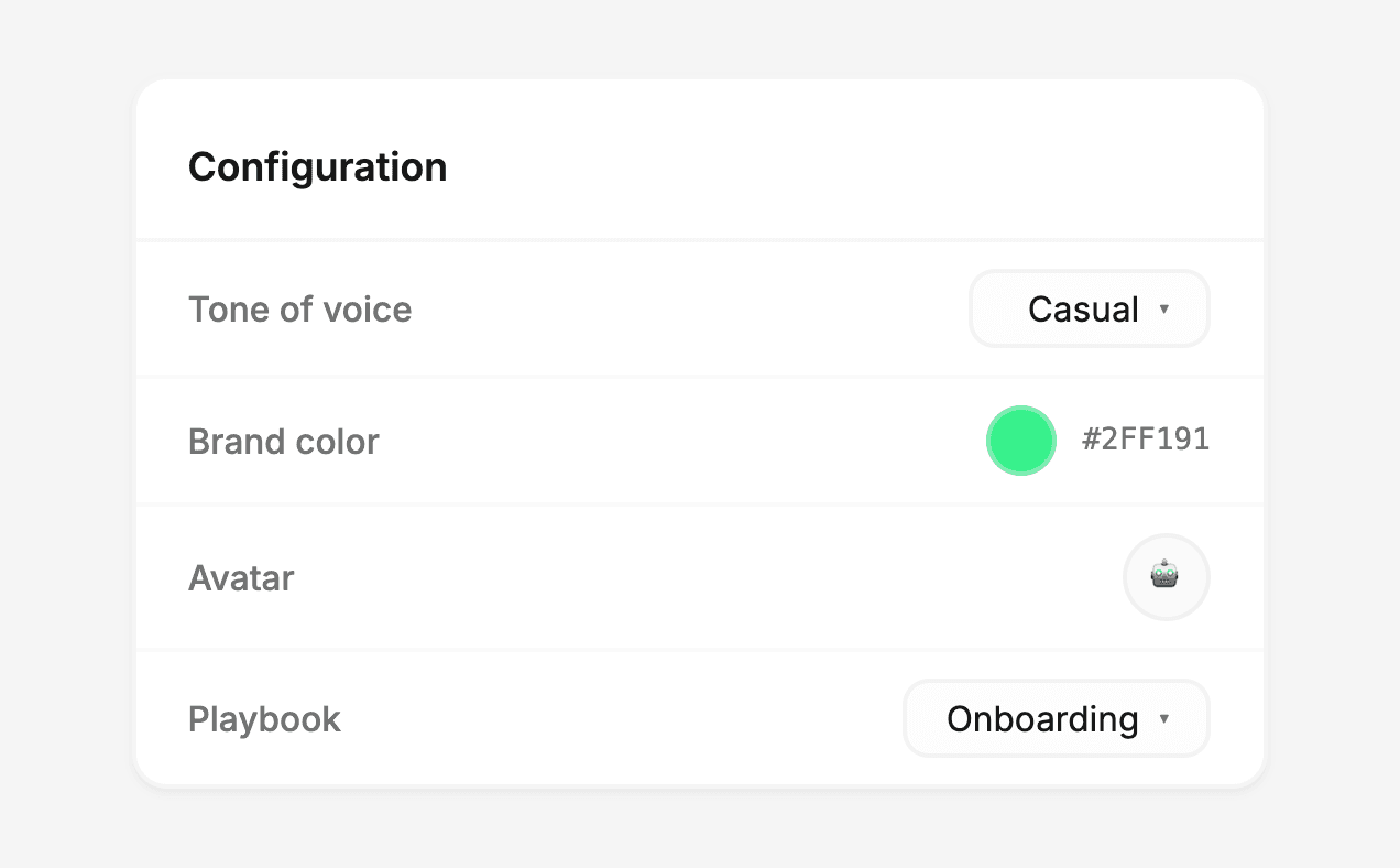 You control everything: the agent's tone, exact phrases, which actions they can take, and where they appear. Set guardrails once, agents follow them always. Product team keeps full visibility and veto power.